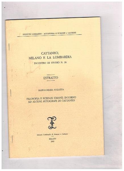 Filosofia e scienze umane: intorno ad alcuni autografi di Cattaneo. Estratto da "Cattaneo, Milano e la Lombardia" - Incontro di studio n. 28.