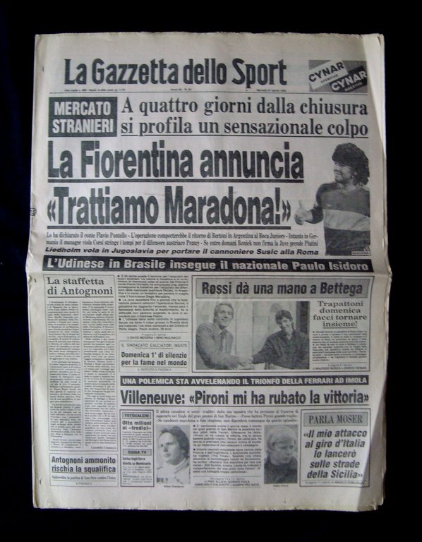 Fiorentina annuncia trattiamo Maradona La Gazzetta dello Sport 27 Aprile 1982