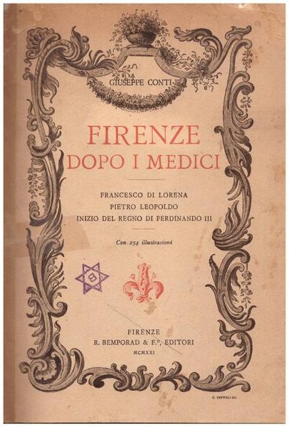8° mezza canapa recente con angoli, doppio tassello con tit. oro al dorso, conservate le copp. origg. pp. 770, con ritratto dell'A. (strappetti marg. restaurati) e 254 illustr. nel testo. Edizione originale. "Storia; cronaca aneddotica; decadenza e oppressione; Invasione di sozze soldatesche e di straccioni lorenesi; depravazione sovrane; Intrighi e prepotenze straniere; usanze e costumi; Feste tradizionali e pubblici divertimenti; Scandali e imbrogli annonari.ecc". Qc. pp. ingiallita ma buon esempl.