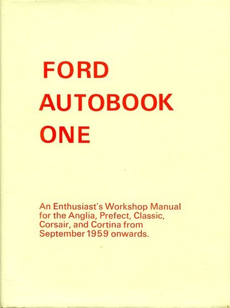 No marks or inscriptions. A very clean very tight copy with bright unmarked brown cloth boards, slight fingermarking to page fore-edges only, none to pages and no bumping to corners. Cream dust jacket not price clipped or marked or torn or creased with slightly sunned spine. 151pp. An enthusiast's Workshop Manual for the Ford Anglia, Prefect, Classic and Cortina and variations from September 1959 onwards.