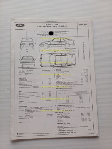 Ford Sierra XR4 2.8 inj. 1983 scheda omologazione DGM Motorizz. Facsimile