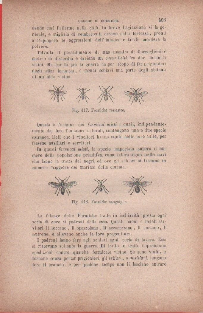 Formiche rossastre; Formiche sanguigne. Vecchia stampa