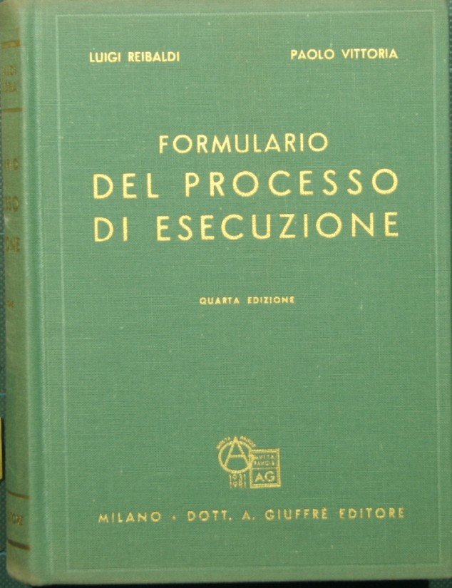 Artt. 474-632 Codice procedura civile - Esecuzione fiscale - Sequestro e vendita autoveicoli, R.D.L. 15 marzo 1927, n. 436 - Coordinato con l'esposizione dei vari articoli e con ampi richiami di dottrina e di giurisprudenza (Appendice con testi legislativi). Quarta edizione - in 16° - pp.VIII + 1735 - Tela e oro con sovracopertina
