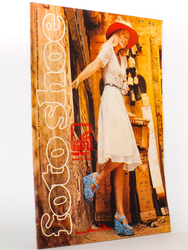 1 vol. in-folio softcover, col. cover, b&w. or col. ill., Foto Shoe, Editecnica Italiana S.R.L., Milano, 1974, 90 pp. Text in Italian, with some transl. in English, French and German. Nice copy (handwritten date on top cover, otherwise a very nice copy) of this issue of an Italian monthly magazine on footwear fashion & business. In 1975, the magazine "Foto shoe" changed its title into "Foto Shoe 30", which has remained unchanged since then. Scarce.