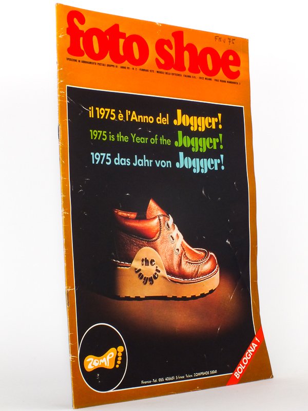 Foto Shoe - Mensile della Editecnica Italiana S.R.L. , Anno VII , N. 2 Febbraio 1975 : il 1975 è l'Anno del Jogger ! - 1975 is the Year of the Jogger ; Bologna 1