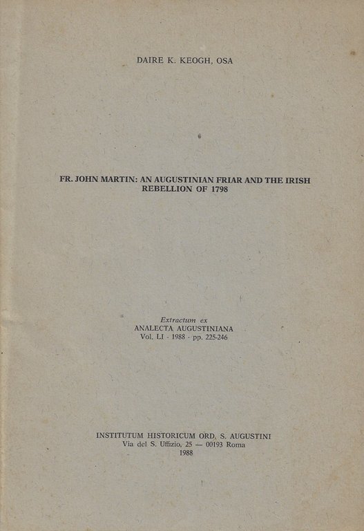 Fr. John Martin: an Augustinian Friar and The Irish Rebellion of 1798