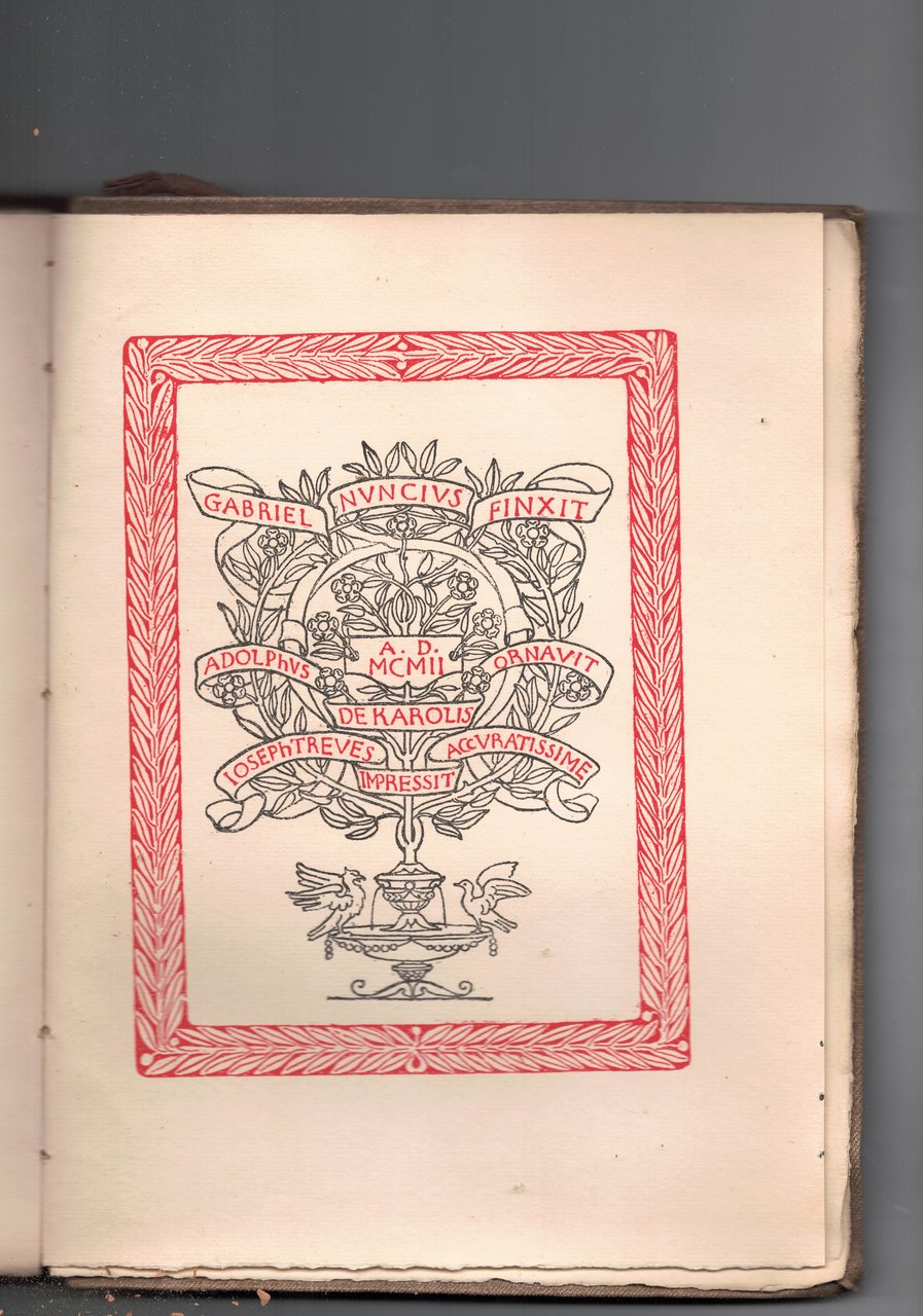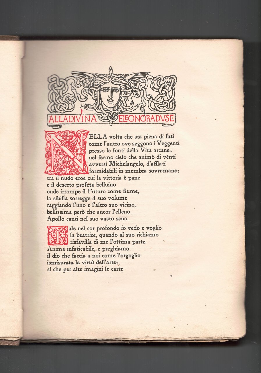 In 8°, legatura tutta tela titoli oro ai piatti e al dorso, pp.289. Front.fig.Illustrazione di Adolphus De Carolis nel testo.