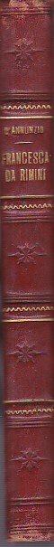 In-8°, pp. (12), 279, (1), legatura coeva m. pelle rossa con titolo in oro e fregi e filetti in oro e a secco su dorso a nervetti. Conservata la brossura editoriale illustrata silograficamente da Adolfo De Carolis, del quale sono anche gli ornamenti su legno intercalati n.t. Ottimo stato. Reimpressione (19° migliaio) tipograficamente identica dell'edizione 'popolare' del 1903, sempre illustrata dal De Carolis, ma in forma più dimessa rispetto all'originale e priva dell'intermezzo musicale dello Scontrino. 'Bellissima edizione popolare ed economica', la definisce il Guabello. Il dramma, dedicato all'amante di allora del Vate, la somma attrice teatrale Eleonora Duse, e rappresentato nel 1901, dette l'estro musicalmente a Riccardo Zandonai per la composizione della sua nota opera lirica. Definito dall'autore 'poema di sangue e di lussuria', porta al suo culmine la preziosità tematica e lessicale e la sensualità dell'arte dannunziana, recuperando - con l'ausilio costante della 'Crestomazia dei primi secoli' di Ernesto Monaci - i più desueti arcaismi della lingua poetica del Duecento. Cfr. De Medici, 54; Guabello, 160; Vecchioni, 27B.