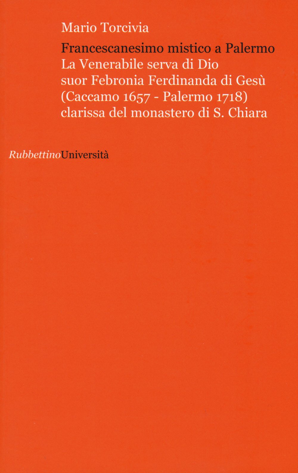 Il volume presenta la vita, le opere, l'iter della Causa di canonizzazione, un'antologia di scritti e l'iconografia della Venerabile suor Febronia Ferdinanda di Gesù, nata a Caccamo (1657) e morta nel monastero palermitano di S. Chiara (1718). La clarissa, prolifica scrittrice, si segnala soprattutto per i sei tomi delle Contemplazioni (1752-1759), contenenti numerose rivelazioni private, che permettono di inserirla a pieno titolo nel lungo elenco di autrici di letteratura mistica cattolica italiana dell'età moderna.