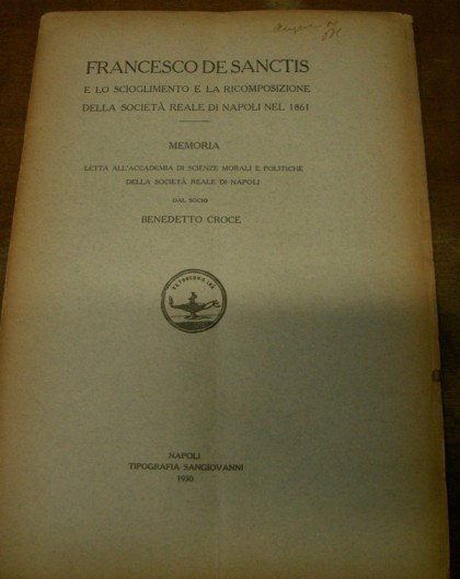 FRANCESCO DE SANCTIS e lo scioglimento e la ricomposizione della Societ Reale di Napoli nel 1861. Memoria letta .