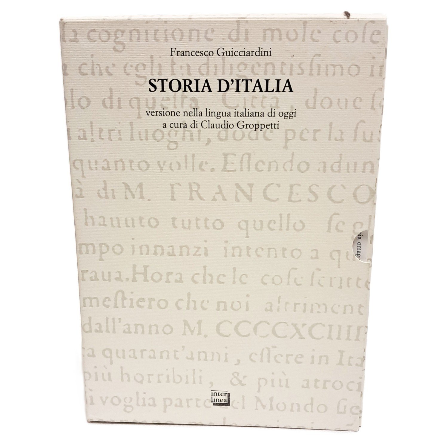 PRIMA EDIZIONE, collana Gli studi numero 95, opera in due volumi, versione nella lingua italiana di oggi. La Storia d'Italia è un'opera storiografica del fiorentino Francesco Guicciardini, dottore in leggi e uomo politico al servizio dei papi medicei Leone X e Clemente VII. Scritta tra il 1537 e il 1540, l'opera consta di venti libri e narra gli avvenimenti accaduti tra il 1492 (anno della morte di Lorenzo il Magnifico) e il 1534 (anno della morte di Papa Clemente VII). Essa fu pubblicata per la prima volta nel 1561 a Firenze. La Storia d'Italia nasce dalla necessità di Guicciardini di verificare tramite l'esperienza della realtà storica le riflessioni condotte nei suoi Ricordi, in cui tra gli altri argomenti tratta dell'impossibilità di cogliere nella storia leggi e modelli assoluti che permettano di prevedere l'andamento degli eventi, ponendosi in contrasto con il pensiero umanista e con il Machiavelli. Guicciardini quindi analizza con spregiudicatezza i fatti, senza mai spiegarli tramite modelli ideali o regole di validità generale, considerando la storia nel suo svolgimento e non soltanto per le conclusioni che da essa si possono trarre: in questo modo egli approda a conclusioni molto pessimistiche sulle sorti future dell'Italia, contrapposte nel proemio al felice periodo delle corti rinascimentali, e nella convinzione che la Fortuna, ovvero l'insieme degli eventi che agiscono sulla realtà, possa essere vinta dalla Virtù umana. Brossura. Pp. 883+887. Con cofanetto. Nuovo.