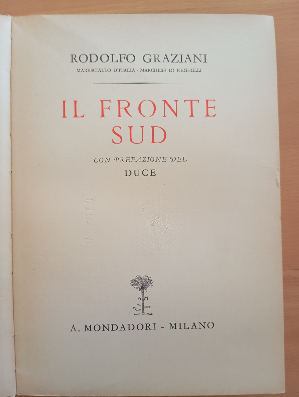 Fronte sud, Rodolfo Graziani, Mondadori, 1938