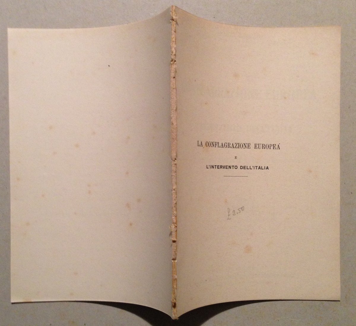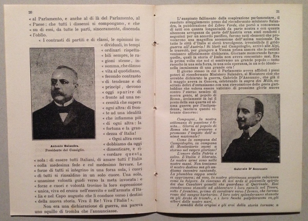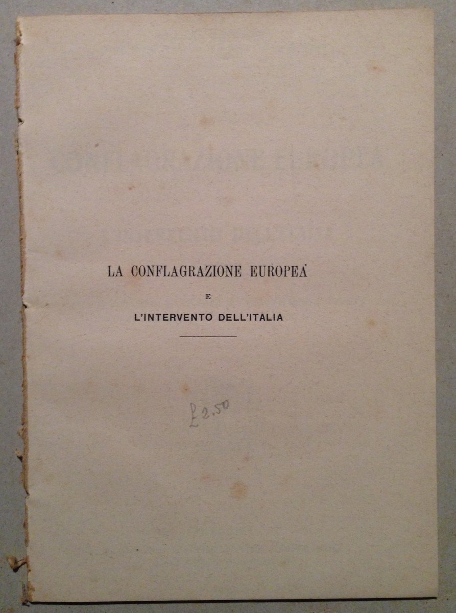 G. Camozzi, La conflagrazione europea e l'intervento dell'Italia Libreria Editrice Ant. Trimarchi, Palermo, 1917; cm. 18,5x13; pp. 30; con ill. fot. in b/n; senza brossura editoriale in quanto proviene da raccolta rilegata in unico volume. Condizioni di conservazione Esemplare in buono stato con leggere tracce d'uso e del tempo (vedi foto); dorso con residui punti di precedente rilegatura. OPEB.5057 MT