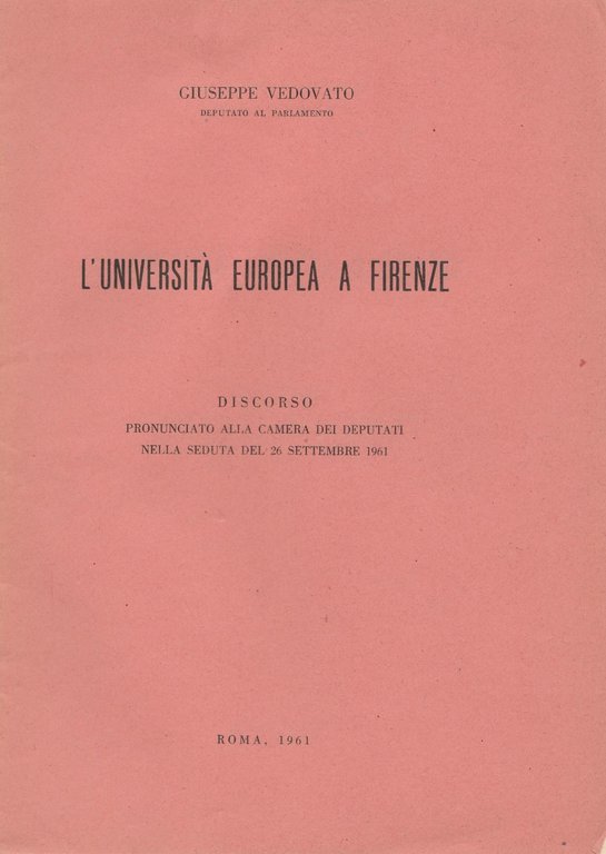 G. Vedovato L'universita' Europea A Firenze Discoso Alla Camera 1961-L4875