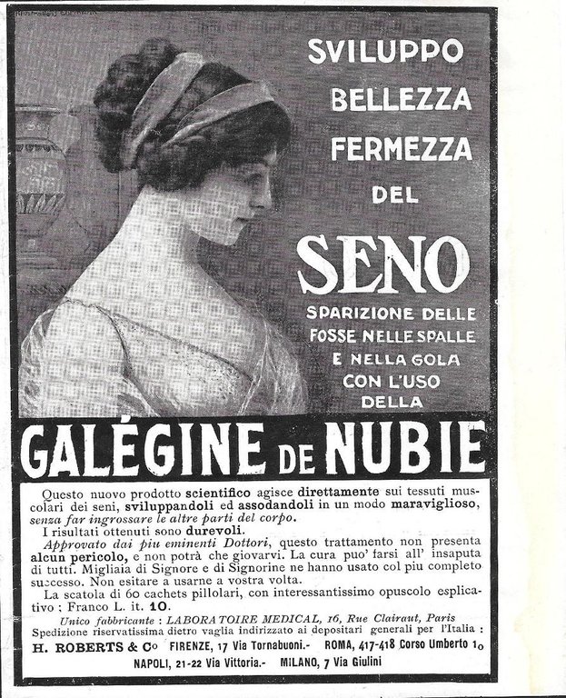 Galégine de Nubie. Sviluppo del seno. Advertising 1912