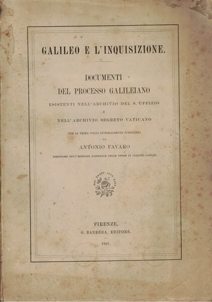 Galileo e l'inquisizione. Documenti del processo galileiano esistenti nell'archivio del S. Uffizio e nell'Archivio segreto Vaticano. Per la prima volta interamente pubblicati