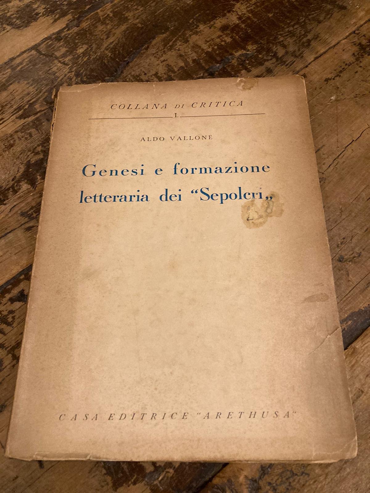 In-8° (22x16 cm), brossura editoriale con titoli al dorso e al piatto anteriore. Pp 175, (3), vignetta editoriale al frontespizio. Collana di Critica, I. Lievi segni del tempo e d'uso alla fragile brossura. Buon esemplare a fogli chiusi. Non comune edizione originale di questo lavoro giovanile del fine dantista salentino (1916-2002) in cui egli traccia una linea della poesia foscoliana analizzando le altre opere di fronte ai Sepolcri. Uno dei primi testi stampati dalla casa editrice astigiana.