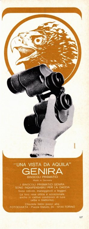 Genira binocoli prismatici. Advertising 1969