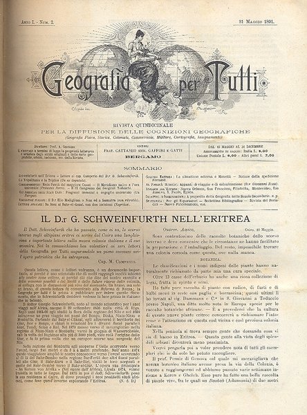 Geografia per tutti. Rivista quindicinale popolare per la diffusione delle cognizioni geografiche, diretta da Arcangelo Ghisleri.