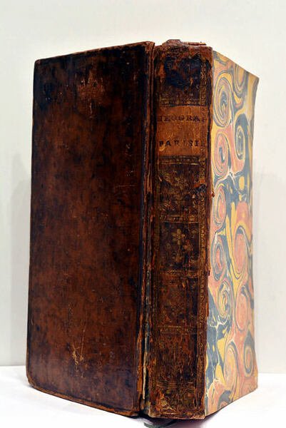 2 pages non chiffrées + 7 pages + page III à XIX + 356 pages + 4 pages non chiffrées (10x17cm). Reliure ancienne Cuir. Coins émoussés. Premier plat manquant. . Charnières fendues. Défauts aux coiffes. Ex-libris héraldiqe frotté au contreplat supérieur. Rousseurs. Edition Originale. Enseignement. Le principe de l'auteur était d'associer la carte de France et le plan de Paris en établissant une correspondance entre les rues de la capitale et les villes de France. Curieux. Géographie.