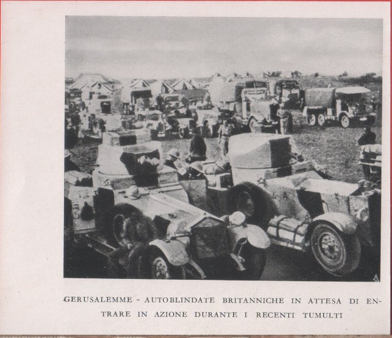 Gerusalemme: autoblinde britanniche in attesa di entrare in azione. Immagine 1937
