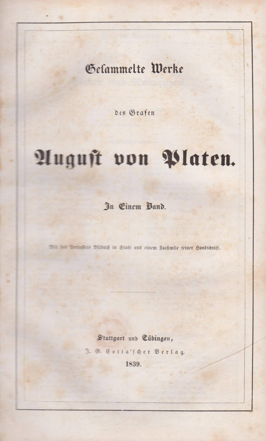 Gesammelte Werke des Grafen August von Platen in einem Band.