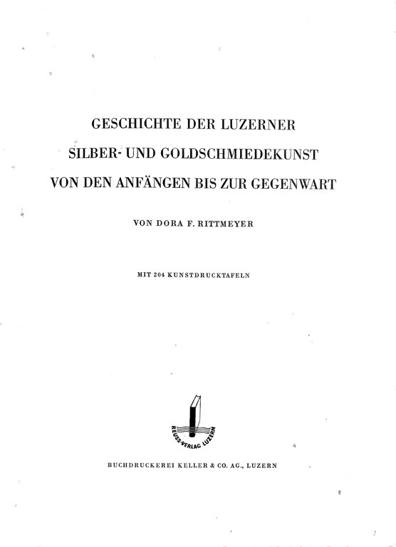 GESCHICHTE DER LUZERNER SILBER - UND GOLDSCHMIEDEKUNST VON DEN ANFANGEN BIS ZUR GEGENWART.