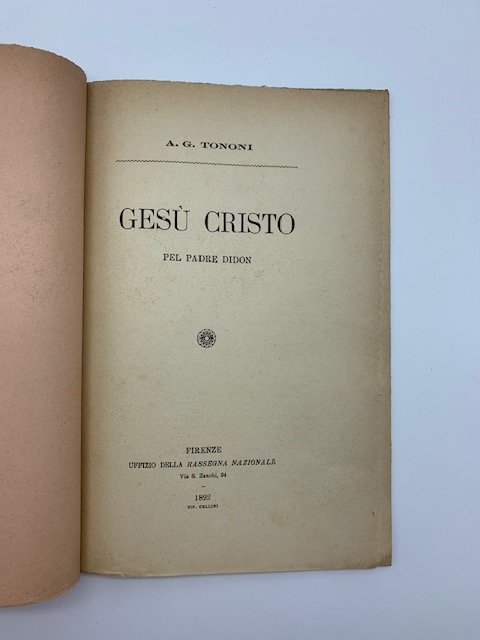 In 8 (cm 15 x 23,5), pp. 23 + (1b). Dedica autografa al piatto anteriore. Brossura editoriale. Saggio sull'opera di Didon intitolata "Jesus Christ" pubblicata a Parigi, presso l'editore Plon, nel 1891.