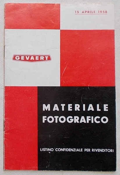 Gevaert. Materiale fotografico. Listino confidenziale per rivenditori. 15 aprile 1958.