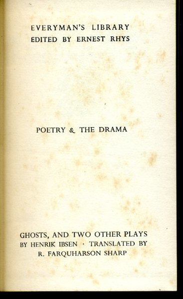 No marks or inscriptions. No creasing to covers or to spine. A very clean very tight copy with unmarked green cloth boards, minor foxing to pages near front and no bumping to corners. 247pp. Three plays in one volume from Henrik Ibsen.