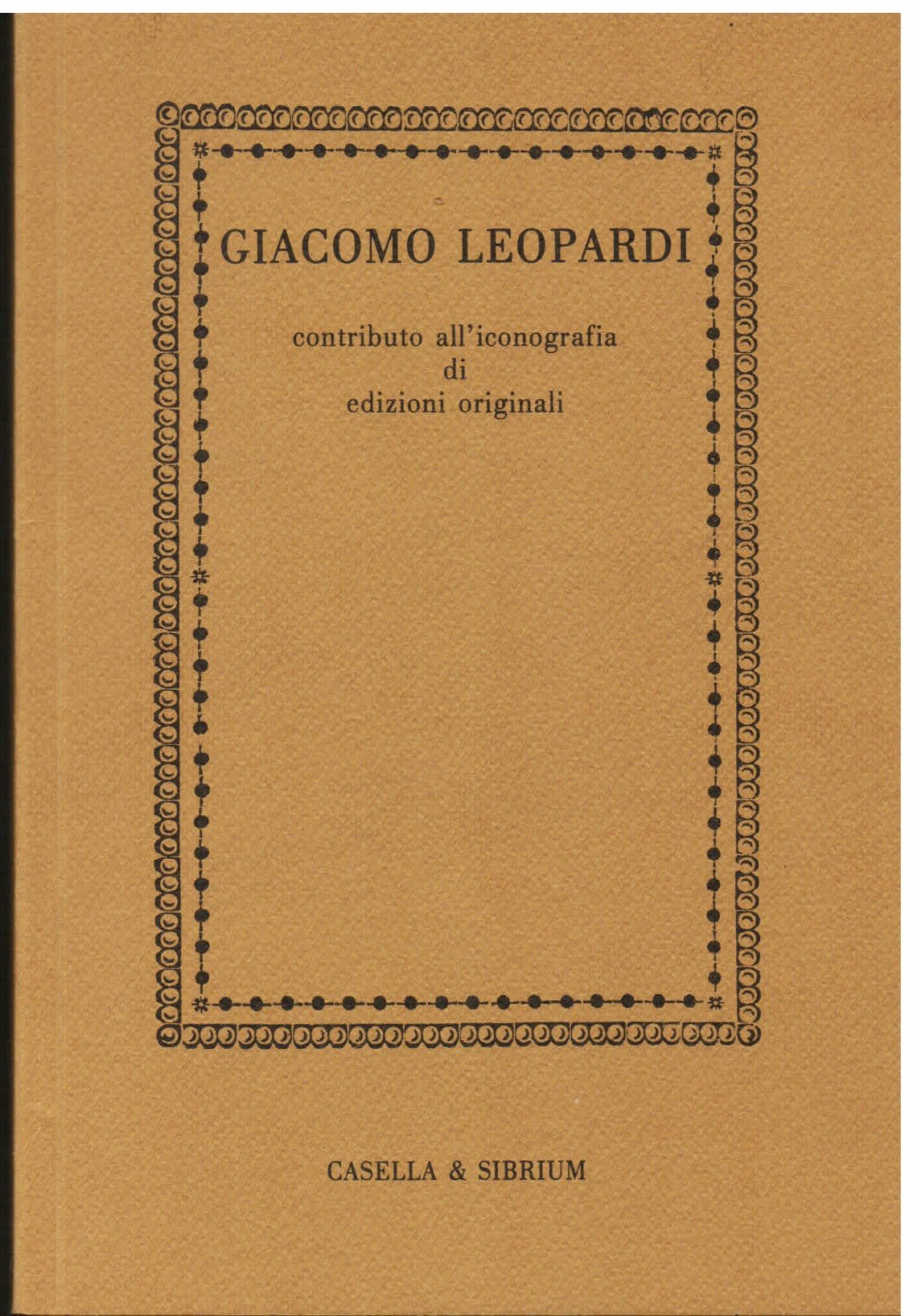 Giacomo Leopardi. Contributo all'iconografia di edizioni originali.