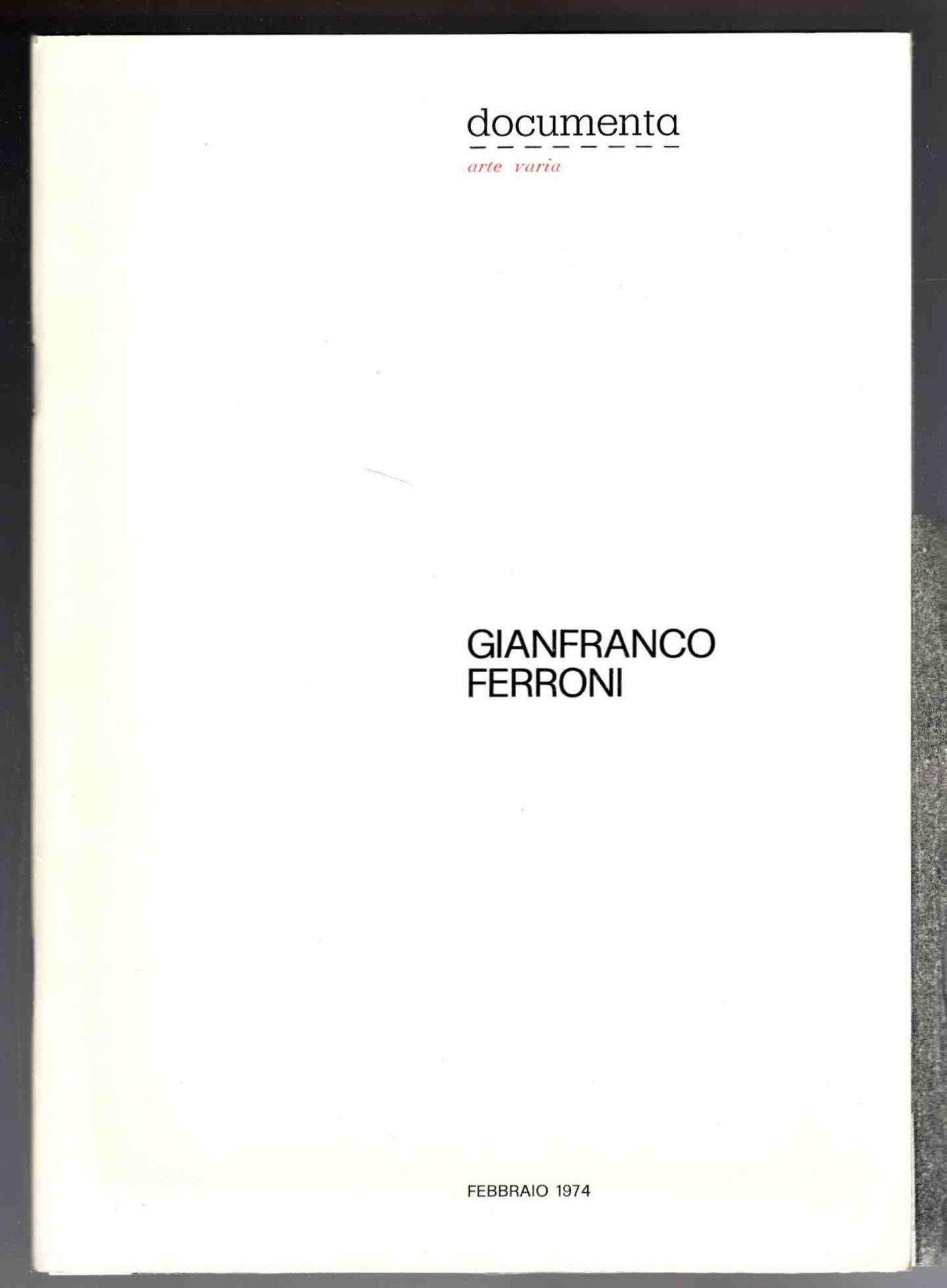 In 8°, pp. (32). Brossura editoriale spillata. Catalogo della mostra tenuta a Torino, Palazzo Villanis. Collana: Documenta. Interessante copia, proveniente dallo studio del pittore torinese Mario Russo, con applicate fotocopie di opere dello stesso Ferroni.