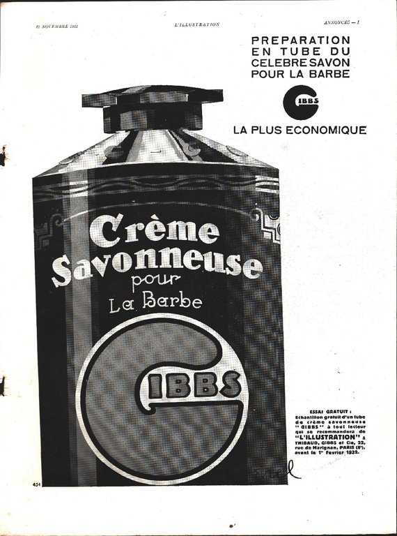 Gibbs creme savonneuse pour la barbe Advertising 1932