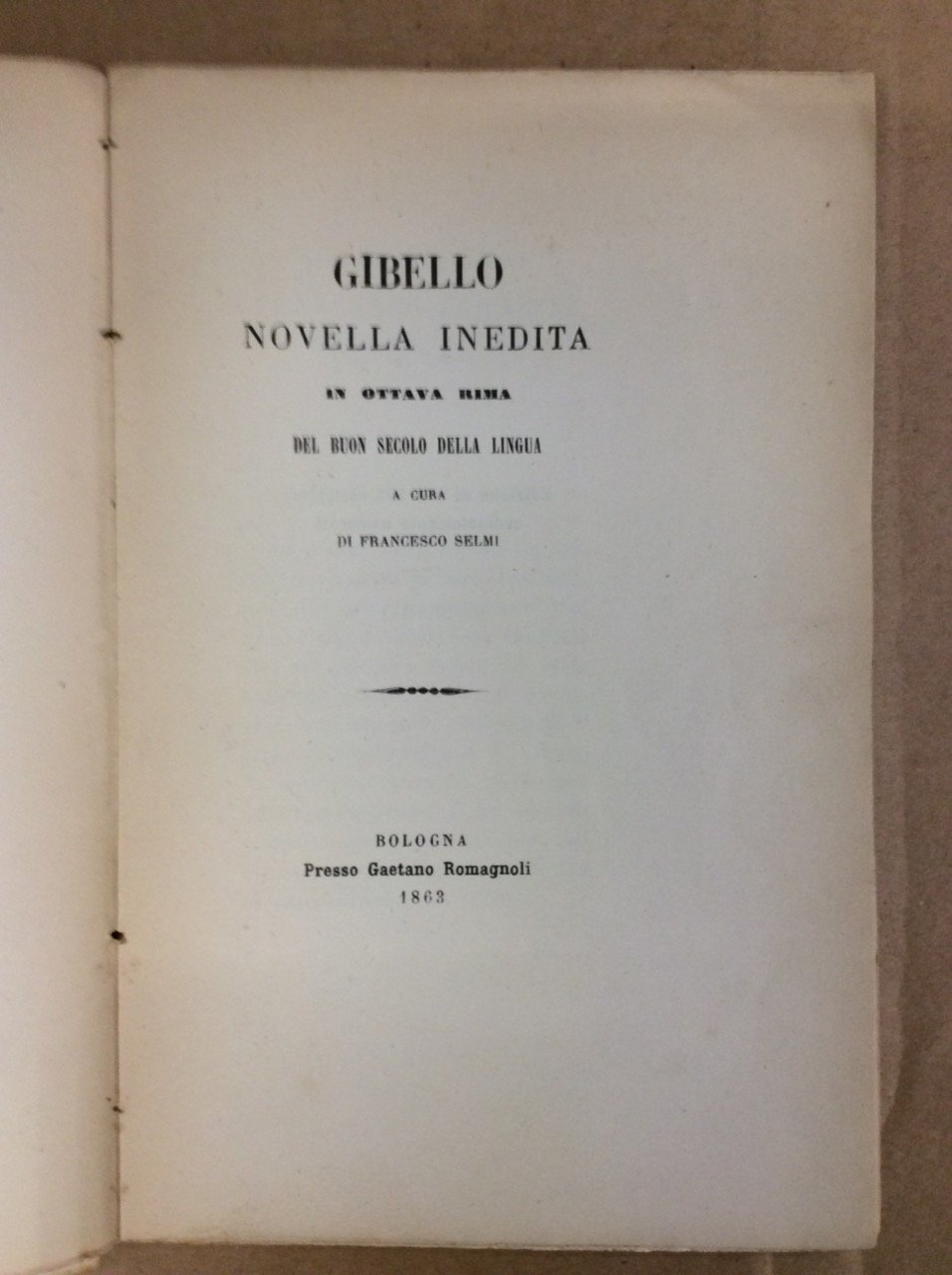 GIBELLO. - Novella inedita. A cura di F. Selmi. Scelta di curiosita' letterarie inedite o rare - n. 35.