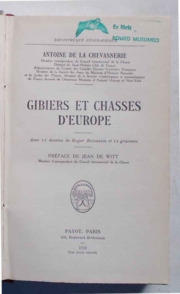 Gibiers et chasses d'Europe.