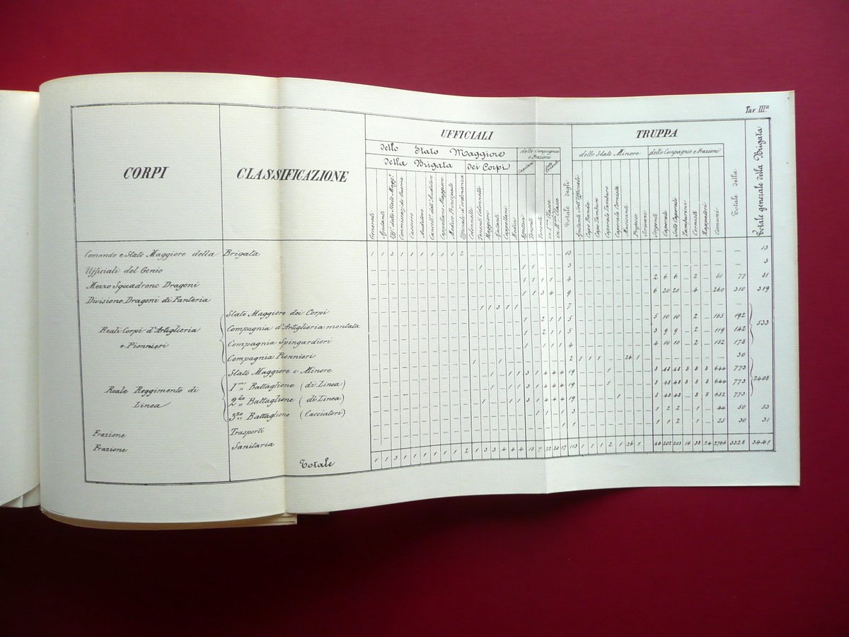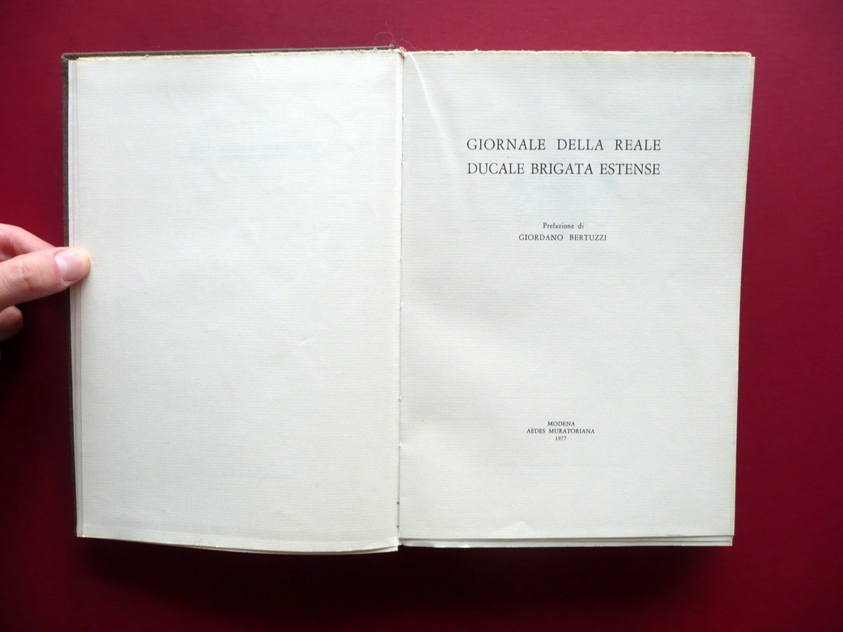 Giornale della Reale Ducale Brigata Estense Prefazione di Giordano Bertuzzi Aedes Muratoriana, Modena 1977; cm 26x18; pp. XXXII-348, con alcune ill., tavole fotografiche fuori t. e tavole ripiegate, pi√π grande carta rip. anch'essa fuori t. Pregevole legatura in tutta tela ed. con stemma Estense impresso in oro al dorso. Ristampa anastatica. Condizioni di conservazione Esemplare molto ben conservato con pochi minuscoli difetti alla legatura. Interni ottimi, ancora intonsi. Copia distinta numerata in numeri romani, realizzata in XXIV copie. N/s XX. Ristampa anastatica. Esemplare intonso. SETT177.L15950 N