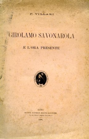 In-8°, pp. 23, brossura editoriale. Macchie e fioriture al piatto, ma ben conservato. Estratto dalla 'Rivista d'Italia', fascicolo 7. Commemorazione di Savonarola letta dal suo massimo studioso del tempo il 10 giugno 1898 (400° anniversario della morte del grande predicatore e riformatore religioso) nella sede della 'Dante Alighieri' di Firenze. 'I partiti verranno, si divideranno poi: essi saranno sempre infecondi, se manca quello che è il fondamento stesso d'ogni vivere libero e civile. La bandiera che il Savonarola volle innalzare, e che fu bruciata insieme con lui nella piazza della Signoria il 23 maggio 1498, risorge ora incontaminata e pura, come la Fenice, dalle ceneri'. Ferrara, Bibliogr. Savonaroliana, p. 72 (con riassunto del contenuto della conferenza ed elenco delle principali recensioni ad essa).
