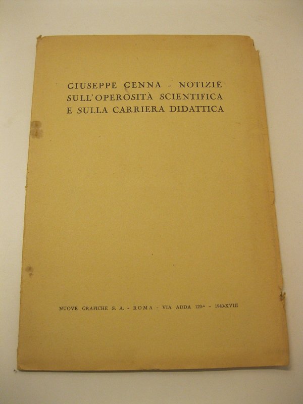 GIUSEPPE GENNA. Notizie sull'operosita' scientifica e sulla carriera didattica