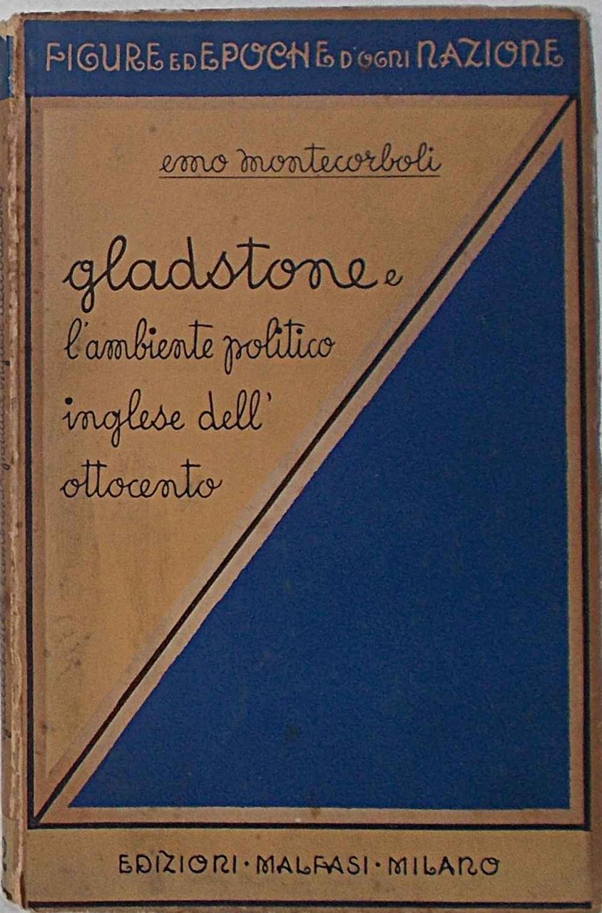 In 16° grande (cm. 19 x 12,5); pagg. 182; leggera cartonatura origin. un po' scurita, ma ottimo. VG-. ** Contiene, tra l'altro: Gladstone in Italia, l'amore e le nozze; le insurrezioni europee e la poilitica inglese; Gladstone paladino dell'Italia rivoluzionaria; duello Gladstone - Disraeli, Gladstone al potere; fiamme sul Mar Nero; il triumvirato liberale inglese e la "questione italiana"; Disraeli al potere; la questione irlandesi, Gladstone al potere; Gladstone e la sue riforme…