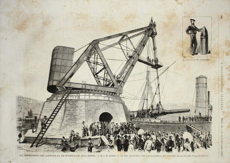 Gli esperimenti del cannone da 100 tonnellate alla Spezia. Stampa 1876