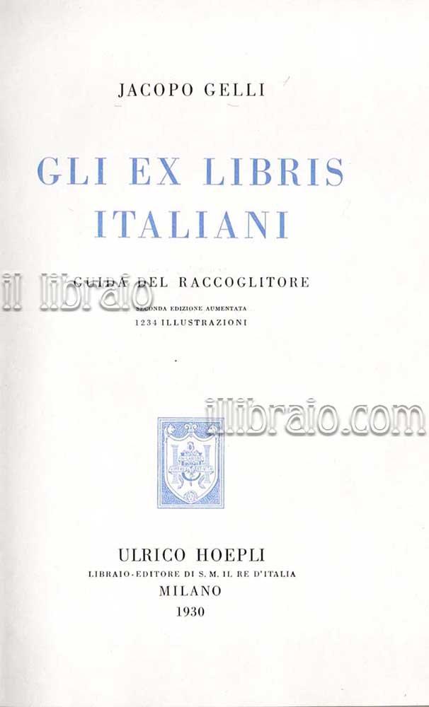 in 16°; pp. LXII, 500 (ill. in bn.); leg. in mezza pelle Con 1234 riproduzioni di ex-libris n.t. Seconda edizione aumentata.