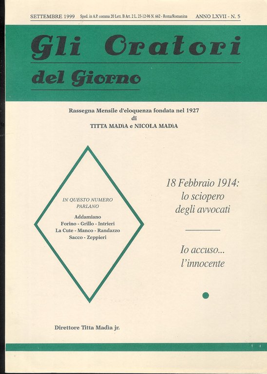 Gli Oratori del giorno rassegna mensile d'eloquenza Anno (Sett 1999) ) LXVII n.5