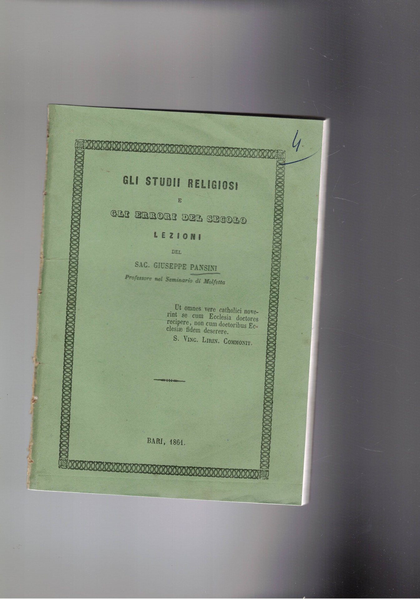 Gli studii religiosi e gli errori del secolo. Lezioni intorno i sacramenti, alla Sacra Bibbia ed all'ultimo periodo di storia eccòlesiastica dal concilio di Trento finoa i giorni nostri.