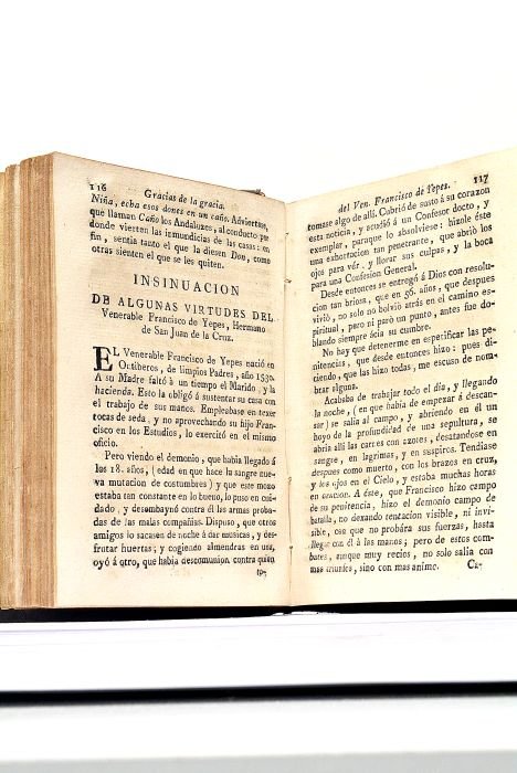 4 feuillets. 420 pages. 1 feuillet. (quelques feuillets intervertis à la fin, mais texte complet). (15 x 11 Cm). Plein veau, dos lisse orné (jolie reliure de l'époque). Coins légèrement émoussés. Papier un peu roussi. Livre interdit. Censure. Malgré l'inscription à la fin "fin de la primera parte", l'ouvrage ne semble pas avoir eu de suite.