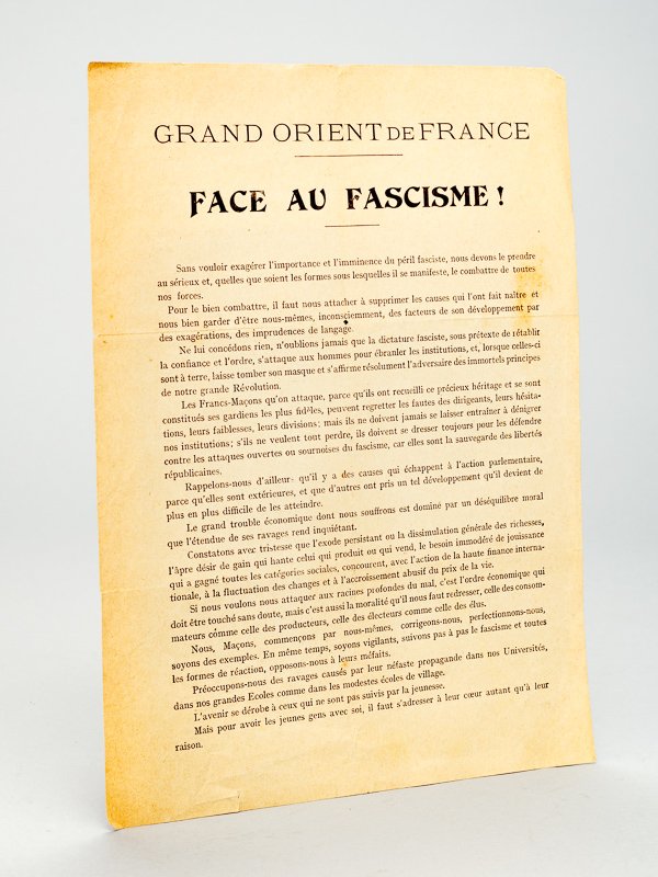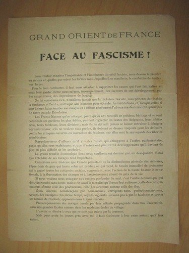 Grand Orient de France. Face au Fascisme !