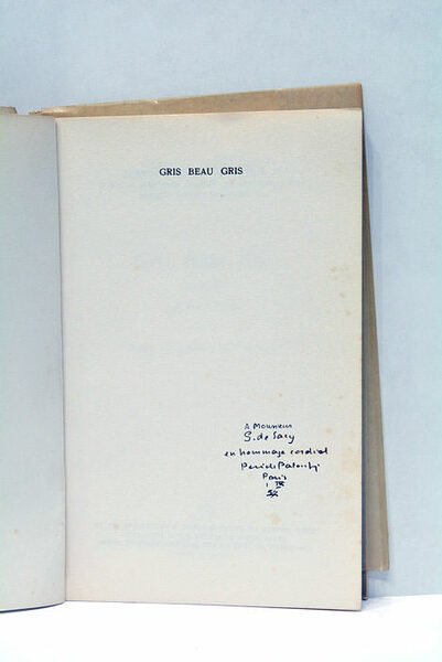 4 feuillets. 109 pages. 1 feuillet. (19x12 cm). Broché, couverture rempliée grise avec pièce de titre blanche imprimée en bordeaux. Très bon état à part quelques très rares taches. Très joli exemplaire de cette première édition, limitée à 100 exemplaires, publiée en 1954 avec un envoi autographe de l'auteur à Monsieur S. de Sacy sur la page du faux titre. Entre 1936 et 1968, dix recueils de poèmes de Patocchi sont parus chez d'importants éditeurs suisses et français. Deux fois, en 1942 et 1960, il a été couronné par un Prix Schiller.