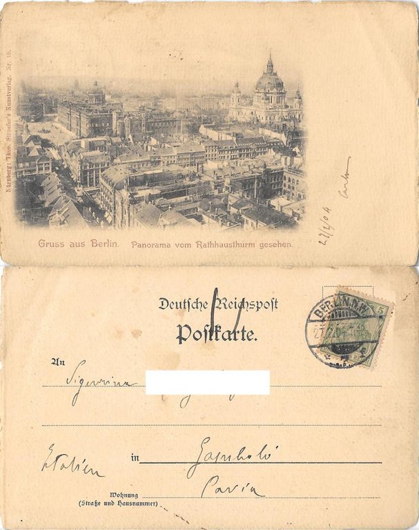 Gruss aus Berlin. Panorama vom Rathausturm gesehen, Viaggiata 1904