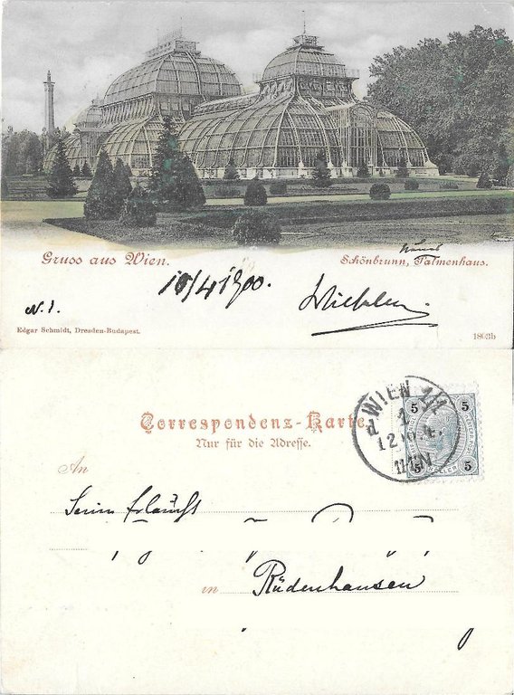 Gruss aus Wien, Schonbrunn Palmenhaus. Viaggiata 1900