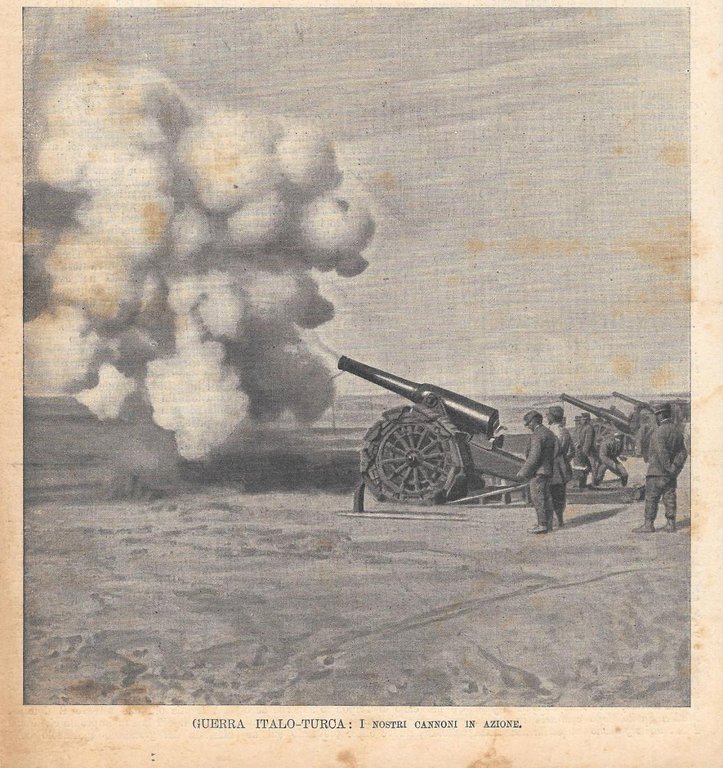 Guerra Italo-Turca. I nostri cannoni in azione. Stampa 1912