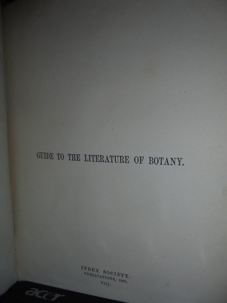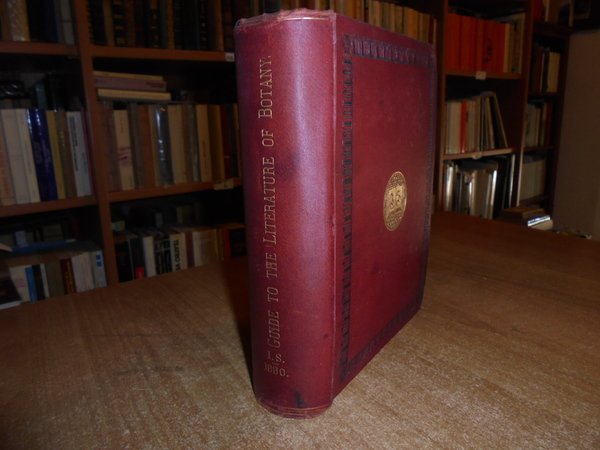 Benjamin Daydon Jackson. London, Published for the Index Society, 1881 da preface. GUIDE to the LITERATURE of BOTANY being a classified selection of botanical works including nearly 6000 titles not given in Pritzel's 'Theasaurus'. In-8°, tela rossa coeva con impressioni a secco sui piani, fregio dorato al piano anteriore e titolo in oro al dorso. XL, 626 , (1) pp. Esemplare in prima edizione ben conservato. Uff. D - I - 2